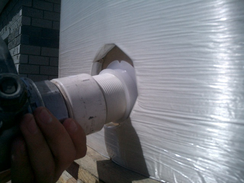 White valve installed ready to evacuate